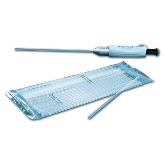 Se usa con las puntas paja estériles BagTips , cuyo largo permite alcanzar el fondo de cualquier bolsa y evitar la contaminación cruzada.